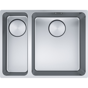 Ανοξείδωτος υποκαθήμενος νεροχύτης με δύο γούρνες ασύμμετρες και μικρή αριστερά ή δεξιά, φινίρισμα INOX της FRANKE συλλογή: Mythos μοντέλο: MYX 160 - 34 - 16, 555x430 mm. Η FRANKE κατασκευάζει τους ανοξείδωτες νεροχύτες της από εξαιρετικής ποιότητας ανοξείδωτο χάλυβα AISI 304 18/10 (Cr/Ni) ανώτερο από οποιαδήποτε άλλη κατηγορία ανοξείδωτου. Η αρμονία του design, των σχημάτων και των υλικών δημιουργούν απαράμιλλη αισθητική, αναδεικνύοντας κάθε κουζίνα.