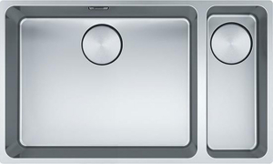 Ανοξείδωτος υποκαθήμενος νεροχύτης με δύο γούρνες ασύμμετρες και μικρή αριστερά ή δεξιά, φινίρισμα INOX της FRANKE συλλογή: Mythos μοντέλο: MYX 160 - 50 - 16, 725x440 mm. Η FRANKE κατασκευάζει τους ανοξείδωτες νεροχύτες της από εξαιρετικής ποιότητας ανοξείδωτο χάλυβα AISI 304 18/10 (Cr/Ni) ανώτερο από οποιαδήποτε άλλη κατηγορία ανοξείδωτου. Η αρμονία του design, των σχημάτων και των υλικών δημιουργούν απαράμιλλη αισθητική, αναδεικνύοντας κάθε κουζίνα.