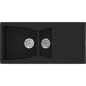 Ένθετος ή υποκαθήμενος νεροχύτης συνθετικός γρανίτη, αντιστρεφόμενος, μία γούρνα μεγάλη μία μικρή με επιφάνεια αποστράγγισης, SANITEC μοντέλο: Libra 329 (104x51 cm) Granite Black διατίθεται σε όλες τις αποχρώσεις του χρωματολογίου. Οι συνθετικοί νεροχύτες παράγονται από την SANITEC εδώ και πολλά έτη, σε διάφορους εργονομικούς σχεδιασμούς, λειτουργικές φόρμες και σε μεγάλη ποικιλία χρωμάτων (με εμφάνιση «γρανίτη» & «μεταλλιζέ»).