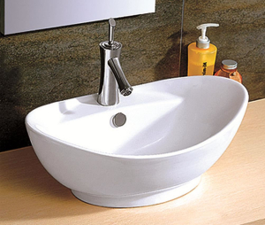 Νιπτήρας πορσελάνης ειδικής επίστρωσης λευκός οβάλ επικαθήμενος σε πάγκο, με οπή για μπαταρία Gloria BEL - KAYAK 59x39x22h cm. Η μπαταρία δεν περιλαμβάνεται