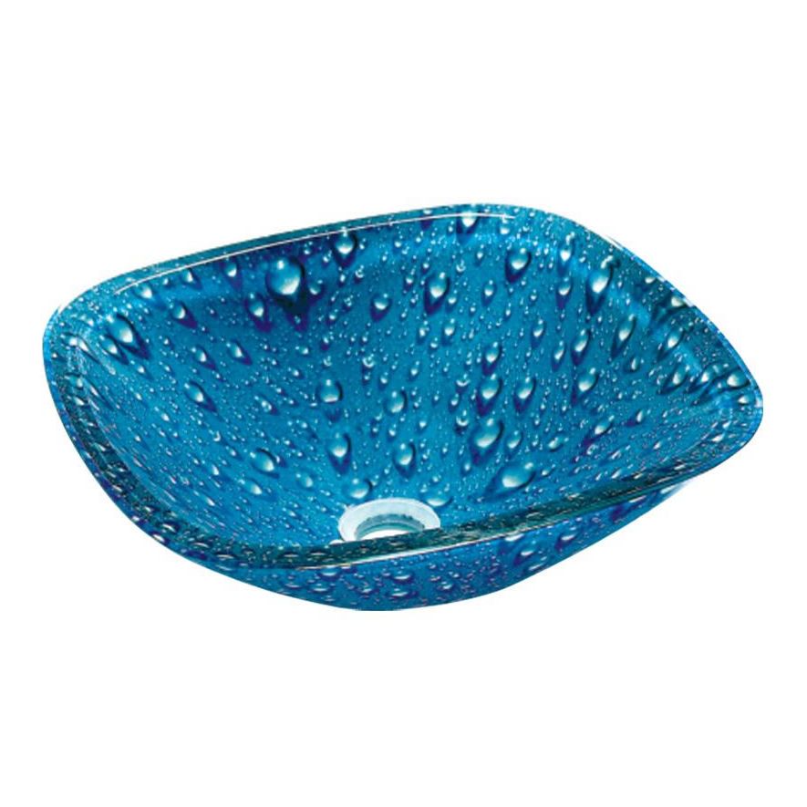 Γυάλινος νιπτήρας χωρίς οπή για μπαταρία και χωρίς υπερχείλιση GLASS BLUE DROPS 40x40x13 cm