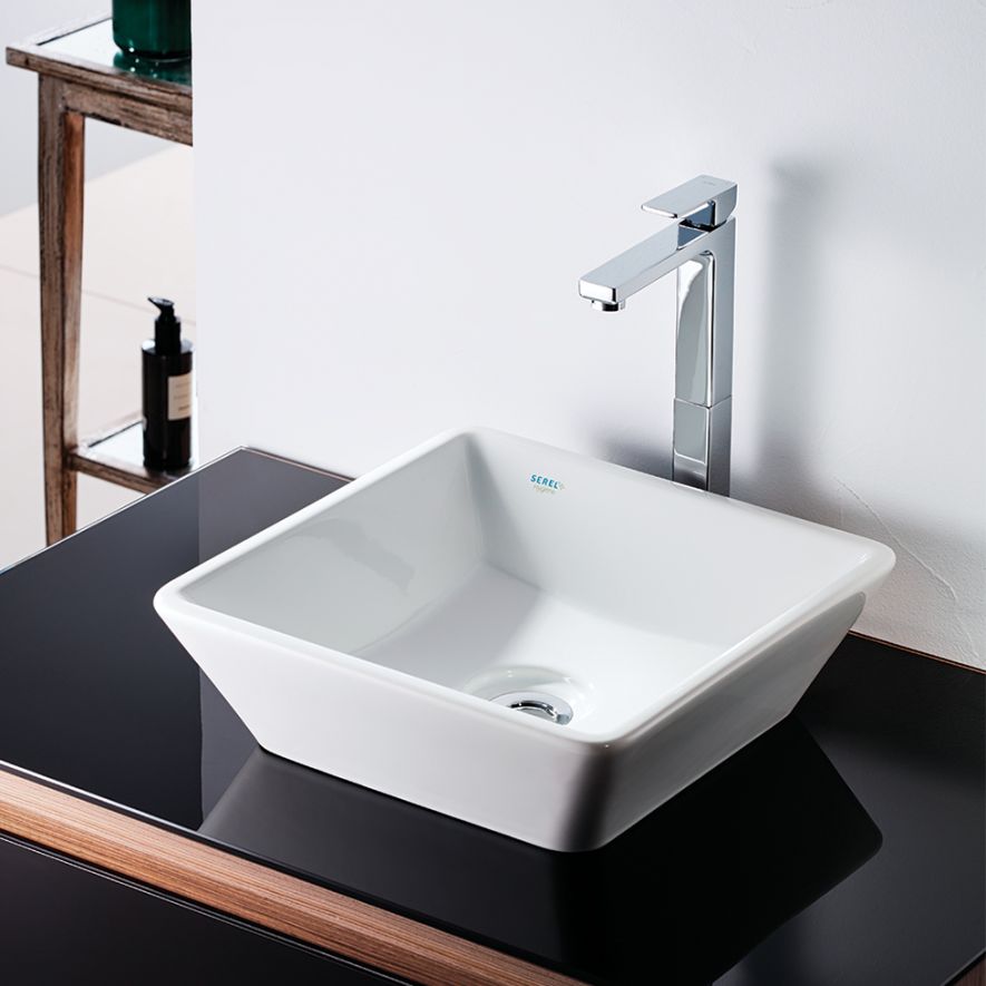 Νιπτήρας επιτραπέζιος πορσελάνης υψηλής ποιότητας, SEREL σειρά 2013 White 38 x 38 cm βάθος γούρνας 12 cm χωρίς υπερχείλιση, επιτραπέζιος - επικαθήμενος. Άριστη ποιότητα που εξασφαλίζει την απαιτούμενη αντοχή και διαχρονικότητα. Στην τιμή δεν συμπεριλαμβάνεται η μπαταρία, το πρόσθετο σύσφιξης και ο πάγκος
