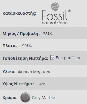 ΝΙΠΤΗΡΑΣ ΜΑΡΜΑΡΙΝΟΣ ΕΠΙΤΡΑΠΕΖΙΟΣ FOSSIL JADE Marble MS 50-410 Grey 50 x 38 cm