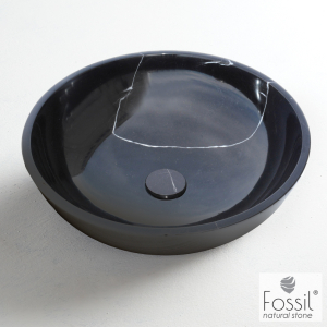 Νιπτήρας από φυσικό μάρμαρο υψηλής ποιότητας, FOSSIL σειρά MOLO Marble DR 45-400 χρώμα Marquina Nero Ø 45 cm βάθος γούρνας 14 cm, χωρίς υπερχείλιση - για τοποθέτηση επιτραπέζιος - επικαθήμενος (για έπιπλο μπάνιου). Άριστη ποιότητα που εξασφαλίζει την απαιτούμενη αντοχή και διαχρονικότητα.