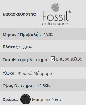 ΝΙΠΤΗΡΑΣ ΜΑΡΜΑΡΙΝΟΣ ΕΠΙΤΡΑΠΕΖΙΟΣ FOSSIL THALO Marble DR 33-400 Marquina Nero Ø 33 cm