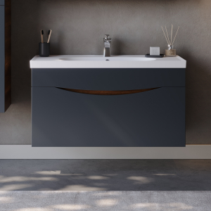 Έπιπλο μπάνιου επιτοίχιος πάγκος της MARTIN σειρά Smile χρώματος Ανθρακί / Barok 100 mat Λάκα MDF