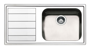 Ανοξείδωτος ένθετος νεροχύτης με ποδιά αριστερά, INOX λείο της APELL μοντέλο: LINEAR 8515. Υψηλής ποιότητας κράμα χάλυβα (18/10). Σχεδιαστικές καινοτομίες με διεθνείς βραβεύσεις, ιταλική φινέτσα για την κουζίνα σας από την APELL.