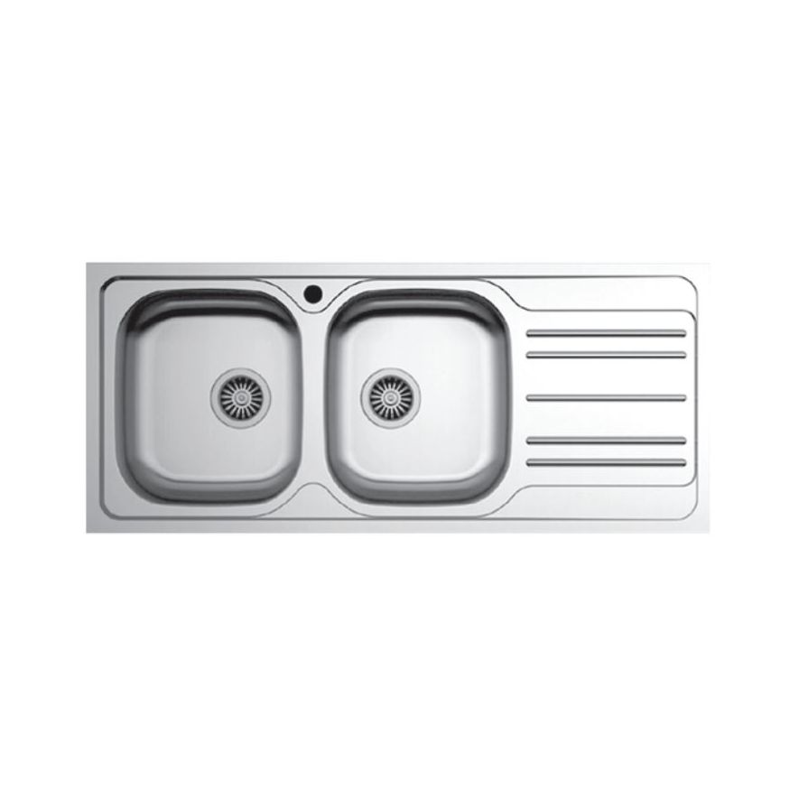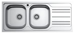 Ανοξείδωτος ένθετος νεροχύτης με δύο γούρνες και ποδιά αντιστρεφόμενος, INOX λείο της EXCEL μοντέλο: AS 17. Υψηλής ποιότητας κράμα μετάλλου ευγενής χάλυβας σειράς 304 (18% χρώμιο /10% νικέλιο) κατάλληλος για οικιακή χρήση.