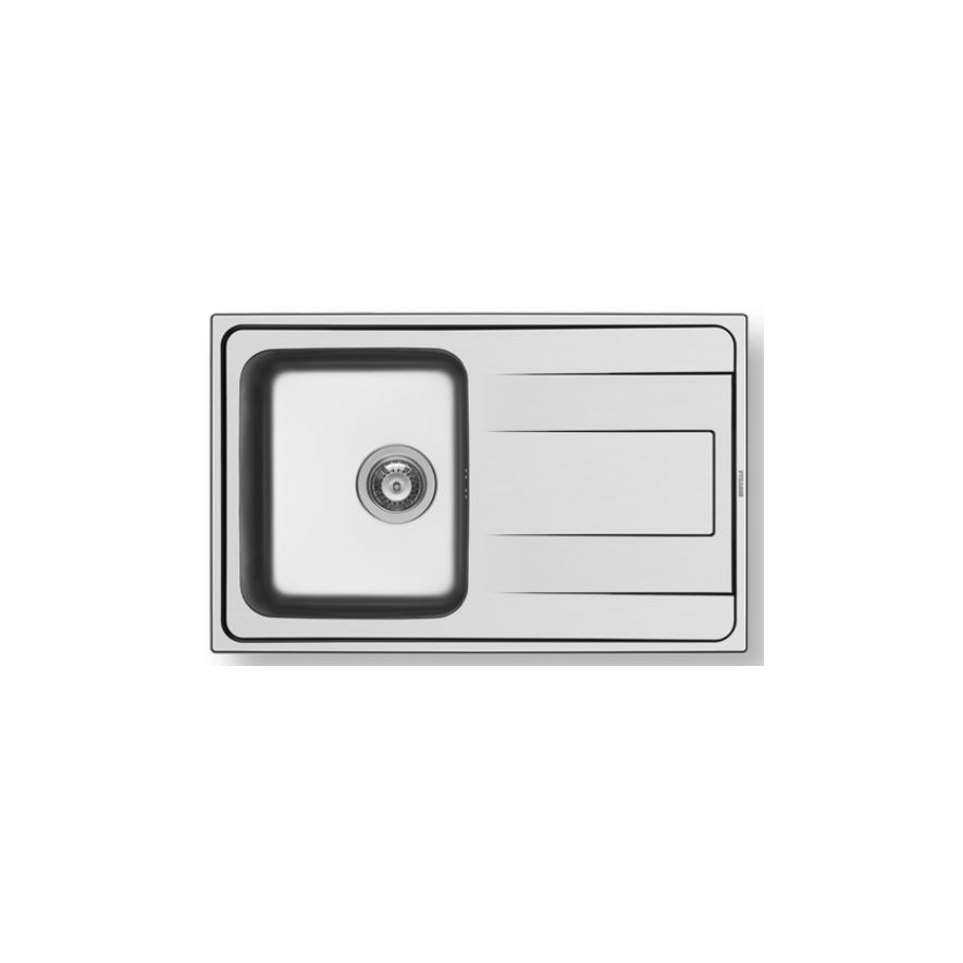 Ανοξείδωτος ένθετος νεροχύτης, μία γούρνα και ποδιά αντιστρεφόμενος, INOX Σαγρέ PYRAMIS μοντέλο: Aela 79x50 1B 1D. Οι ανοξείδωτοι νεροχύτες PYRAMIS είναι κατασκευασμένοι, αποκλειστικά και μόνο, από άριστης ποιότητάς ατσάλι (CrNi 18/10), τύπου AISI 304. Το άριστης ποιότητας ανοξείδωτο υλικό είναι κατάλληλο για επαφή με τρόφιμα. Παρουσιάζει εξαιρετική αντοχή σε ισχυρά οξέα όπως το νιτρικό οξύ, σε αλκαλικά διαλύματα καθώς και σε διαλύματα οργανικών και ανόργανων αλάτων, ώστε ο νεροχύτης να παραμένει αναλλοίωτος για μια ζωή.