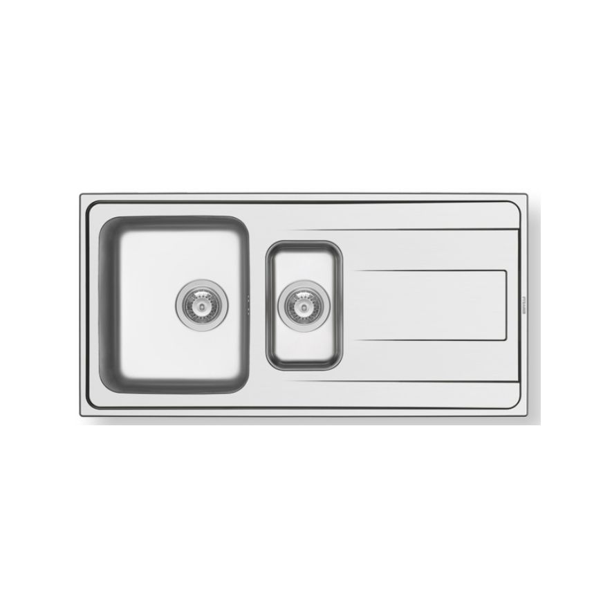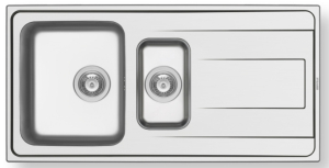 Ανοξείδωτος ένθετος νεροχύτης αντιστρεφόμενος, δύο γούρνες και ποδιά, INOX Λείο PYRAMIS μοντέλο: Alea 100x50 1 1/2B 1D. Οι ανοξείδωτοι νεροχύτες PYRAMIS είναι κατασκευασμένοι, αποκλειστικά και μόνο, από άριστης ποιότητάς ατσάλι (CrNi 18/10), τύπου AISI 304. Το άριστης ποιότητας ανοξείδωτο υλικό είναι κατάλληλο για επαφή με τρόφιμα. Παρουσιάζει εξαιρετική αντοχή σε ισχυρά οξέα όπως το νιτρικό οξύ, σε αλκαλικά διαλύματα καθώς και σε διαλύματα οργανικών και ανόργανων αλάτων, ώστε ο νεροχύτης να παραμένει αναλλοίωτος για μια ζωή.