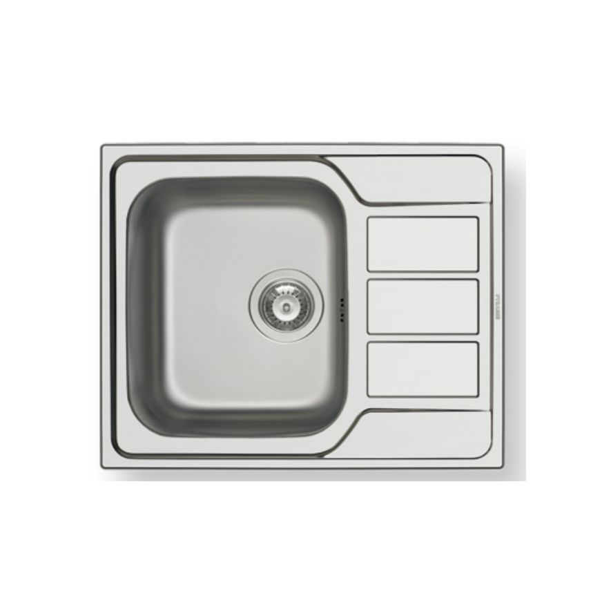 Ανοξείδωτος ένθετος νεροχύτης, μία γούρνα και ποδιά αντιστρεφόμενος, INOX Σαγρέ PYRAMIS μοντέλο: Athena (62x50) 1B 1D. Οι ανοξείδωτοι νεροχύτες PYRAMIS είναι κατασκευασμένοι, αποκλειστικά και μόνο, από άριστης ποιότητάς ατσάλι (CrNi 18/10), τύπου AISI 304. Το άριστης ποιότητας ανοξείδωτο υλικό είναι κατάλληλο για επαφή με τρόφιμα. Παρουσιάζει εξαιρετική αντοχή σε ισχυρά οξέα όπως το νιτρικό οξύ, σε αλκαλικά διαλύματα καθώς και σε διαλύματα οργανικών και ανόργανων αλάτων, ώστε ο νεροχύτης να παραμένει αναλλοίωτος για μια ζωή.