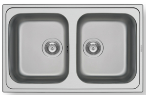 Ανοξείδωτος ένθετος νεροχύτης, δύο γούρνες χωρίς ποδιά, INOX Σαγρέ PYRAMIS μοντέλο: Athena (79x50) 2B. Οι ανοξείδωτοι νεροχύτες PYRAMIS είναι κατασκευασμένοι, αποκλειστικά και μόνο, από άριστης ποιότητάς ατσάλι (CrNi 18/10), τύπου AISI 304. Το άριστης ποιότητας ανοξείδωτο υλικό είναι κατάλληλο για επαφή με τρόφιμα. Παρουσιάζει εξαιρετική αντοχή σε ισχυρά οξέα όπως το νιτρικό οξύ, σε αλκαλικά διαλύματα καθώς και σε διαλύματα οργανικών και ανόργανων αλάτων, ώστε ο νεροχύτης να παραμένει αναλλοίωτος για μια ζωή.