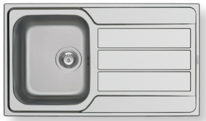 Ανοξείδωτος ένθετος νεροχύτης, μία γούρνα και ποδιά αντιστρεφόμενος, INOX Σαγρέ PYRAMIS μοντέλο: Athena (86x50) 1B 1D. Οι ανοξείδωτοι νεροχύτες PYRAMIS είναι κατασκευασμένοι, αποκλειστικά και μόνο, από άριστης ποιότητάς ατσάλι (CrNi 18/10), τύπου AISI 304. Το άριστης ποιότητας ανοξείδωτο υλικό είναι κατάλληλο για επαφή με τρόφιμα. Παρουσιάζει εξαιρετική αντοχή σε ισχυρά οξέα όπως το νιτρικό οξύ, σε αλκαλικά διαλύματα καθώς και σε διαλύματα οργανικών και ανόργανων αλάτων, ώστε ο νεροχύτης να παραμένει αναλλοίωτος για μια ζωή.