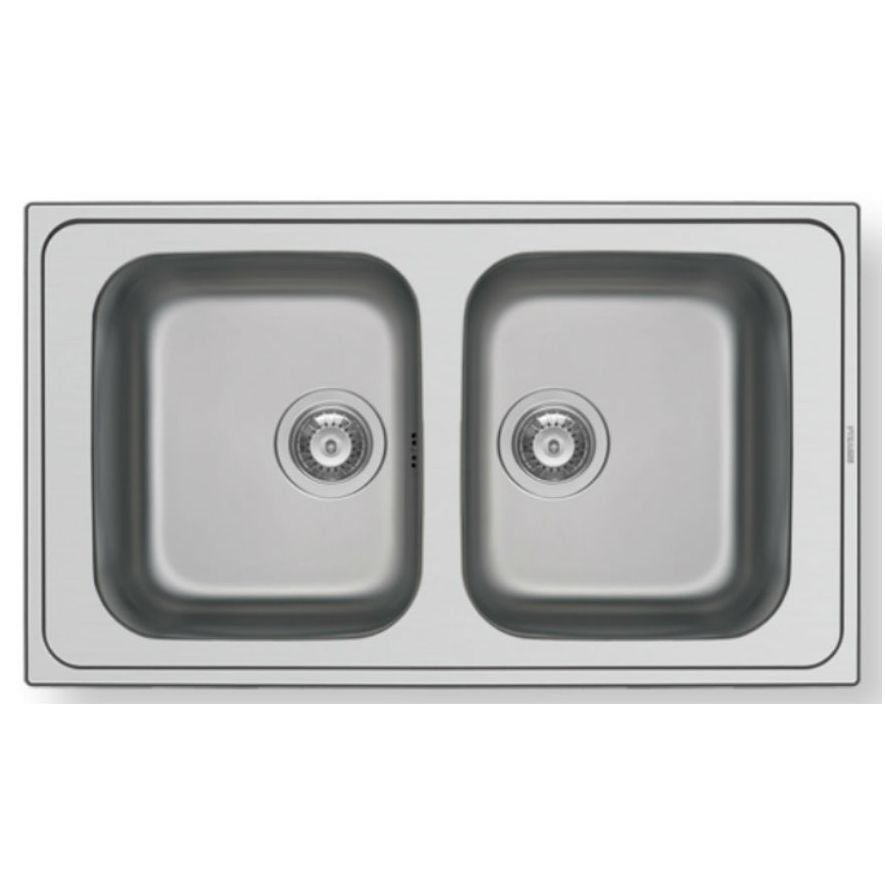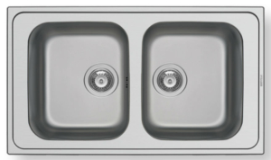 Ανοξείδωτος ένθετος νεροχύτης, δύο γούρνες χωρίς ποδιά, INOX Σαγρέ PYRAMIS μοντέλο: Athena (86x50) 2B. Οι ανοξείδωτοι νεροχύτες PYRAMIS είναι κατασκευασμένοι, αποκλειστικά και μόνο, από άριστης ποιότητάς ατσάλι (CrNi 18/10), τύπου AISI 304. Το άριστης ποιότητας ανοξείδωτο υλικό είναι κατάλληλο για επαφή με τρόφιμα. Παρουσιάζει εξαιρετική αντοχή σε ισχυρά οξέα όπως το νιτρικό οξύ, σε αλκαλικά διαλύματα καθώς και σε διαλύματα οργανικών και ανόργανων αλάτων, ώστε ο νεροχύτης να παραμένει αναλλοίωτος για μια ζωή.