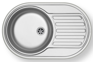 Ανοξείδωτος ένθετος νεροχύτης, μία γούρνα με ποδιά αντιστρεφόμενος, INOX Σατινέ PYRAMIS μοντέλο: SR Mini (76,5X48). Οι ανοξείδωτοι νεροχύτες PYRAMIS είναι κατασκευασμένοι, αποκλειστικά και μόνο, από άριστης ποιότητάς ατσάλι (CrNi 18/10), τύπου AISI 304. Το άριστης ποιότητας ανοξείδωτο υλικό είναι κατάλληλο για επαφή με τρόφιμα. Παρουσιάζει εξαιρετική αντοχή σε ισχυρά οξέα όπως το νιτρικό οξύ, σε αλκαλικά διαλύματα καθώς και σε διαλύματα οργανικών και ανόργανων αλάτων, ώστε ο νεροχύτης να παραμένει αναλλοίωτος για μια ζωή.