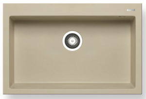 Ένθετος νεροχύτης γρανίτη, μία γούρνα, PYRAMIS μοντέλο: Pyragranite Istros (76x50) 1B χρώματος Mocha. Διατίθεται επίσης σε χρωματισμούς Beige, Carbon, Iron Grey και Snow. Οι νεροχύτες PYRAMIS Pyragranite αποτελούνται από 80% κρυστάλλους φυσικού γρανίτη (silica), ενώ το υπόλοιπο 20% του μείγματος αποτελείται από ρητίνες και άλλες ουσίες που βοηθούν στη σύνδεση των κρυστάλλων, ώστε ο νεροχύτης να παραμένει αναλλοίωτος για μια ζωή.