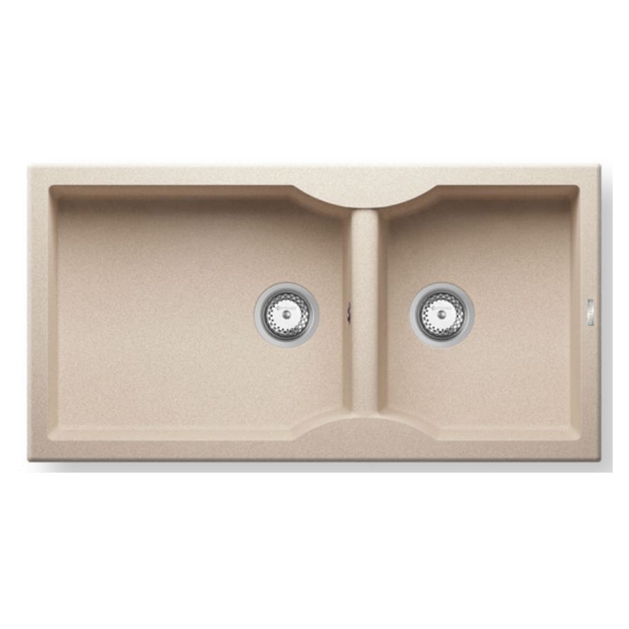 Ένθετος νεροχύτης συνθετικός, δύο γούρνες χωρίς ποδιά αντιστρεφόμενος,PYRAMIS μοντέλο: Pyratek Aeolia (96x50) 1 3/4B χρώματος Grano. Διατίθεται επίσης σε Cristalo Bianco και Chabagne χρωματισμούς. Οι νεροχύτες Pyrateκ αποτελούνται από 70% ανθρακικό ασβέστιο (CaCO3) ενώ, το υπόλοιπο 30% του μείγματος αποτελείται από ρητίνες και άλλες ουσίες που συνθέτουν ένα συμπαγές υλικό, ώστε ο νεροχύτης να παραμένει αναλλοίωτος για μια ζωή.