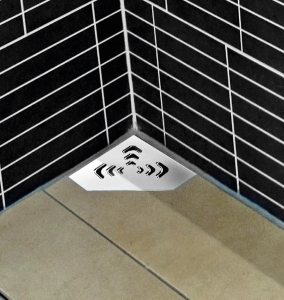 Σύστημα αποχέτευσης γωνιακό σιφόνι μεταλλικό ανοξείδωτο με μία έξοδο KARAG της σειράς CONFLUO ANGLE.