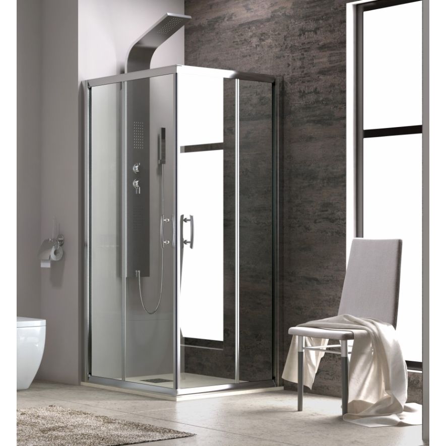 Καμπίνα ντουζιέρας τετράγωνη Karag μοντέλο FLORA 100, 120x120xh 190 cm, κρύσταλλο ασφαλείας 6 mm. Tempered διαφανές, μεταλλικά μέρη ανοδιωμένο προφίλ αλουμινίου.