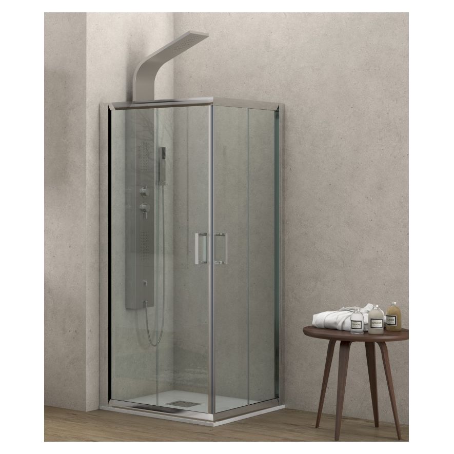 Καμπίνα ντουζιέρας τετράγωνη Karag μοντέλο NEW FLORA 100, 110x110xh 180 cm, κρύσταλλο ασφαλείας 6 mm Tempered διαφανές ή σεριγραφάτο, μεταλλικά μέρη ανοδιωμένο προφίλ αλουμινίου.