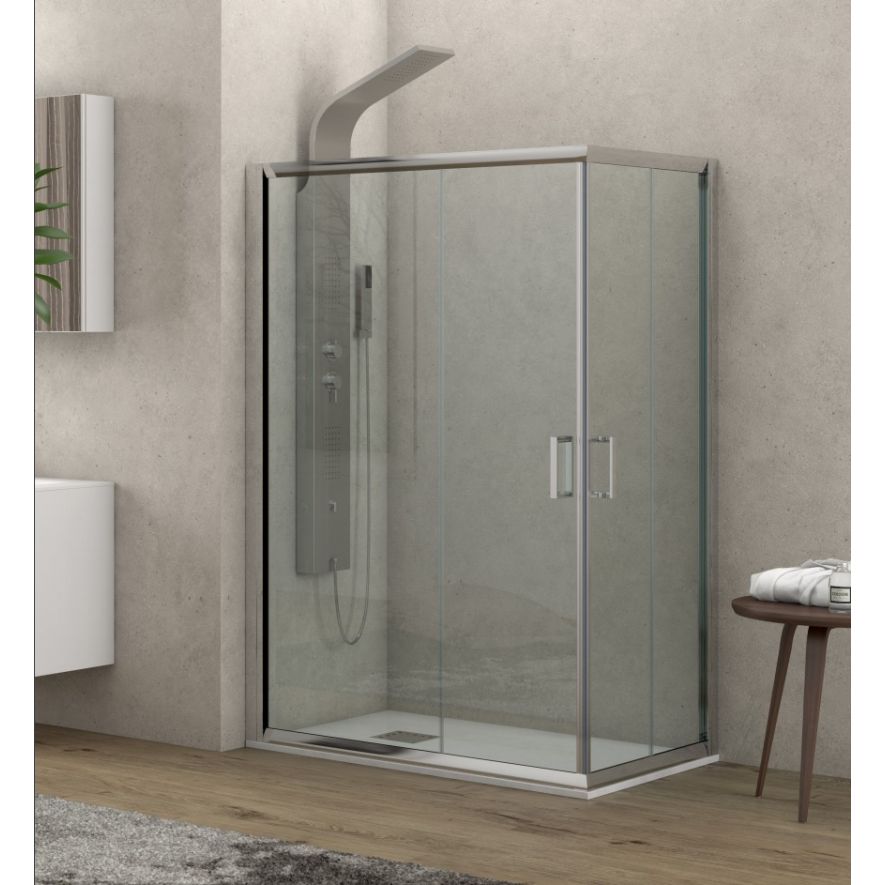 Καμπίνα ντουζιέρας ορθογώνια - ασύμμετρη Karag μοντέλο NEW FLORA 100, 100x130x h180 cm, κρύσταλλο ασφαλείας 6 mm Tempered διαφανές ή σεριγραφάτο, μεταλλικά μέρη ανοδιωμένο προφίλ αλουμινίου.