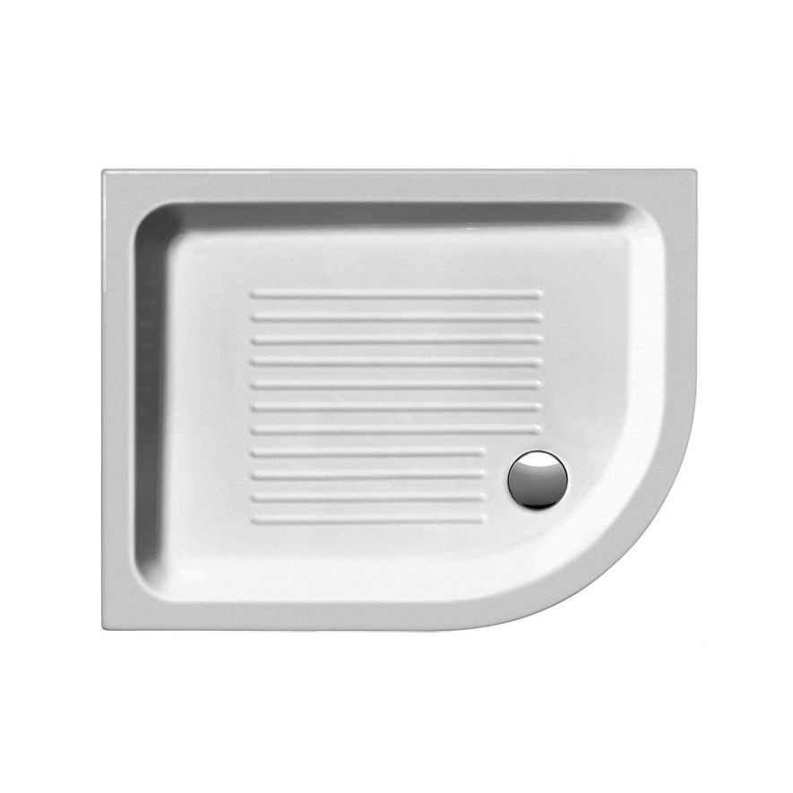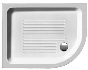 Ντουζιέρα πορσελάνης γωνιακή, ημικυκλική επιδαπέδια, δεξιάς φοράς τοποθέτησης GSI μοντέλο Basic 4596 χρώμα λευκό, 90x70x10 cm. Μοντέρνος σχεδιασμός, καθαρές γραμμές και πολυμορφία.