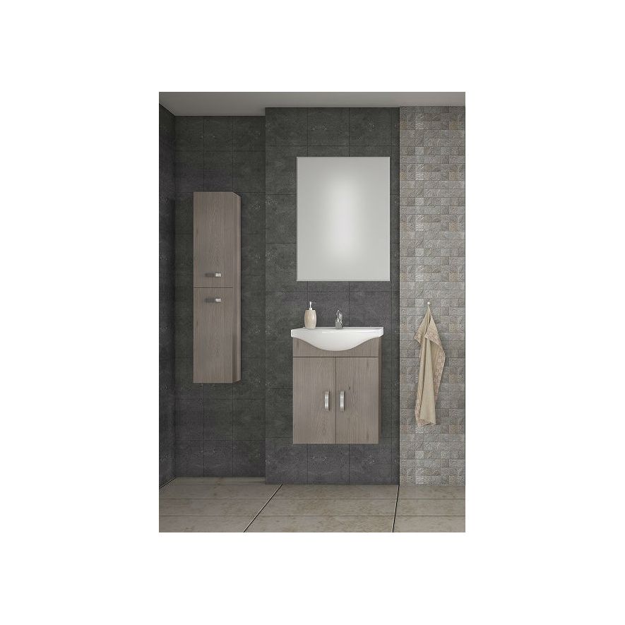 Έπιπλο μπάνιου Drop της σειράς Economic μοντέλο ALBA 55 Brown 3. Κρεμαστή βάση επίπλου, ενιαίος αποθηκευτικός χώρος δύο πόρτες, νιπτήρας πορσελάνης Monoblock, καθρέπτης κρεμαστός. Κομψότητα με στυλ. Μοντέρνες λύσεις που ξεχωρίζουν, για ένα μπάνιο με προσωπικότητα.
