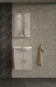 Έπιπλο μπάνιου Drop της σειράς Economic μοντέλο ALBA 55 Elm Wood 2. Κρεμαστή βάση επίπλου, ενιαίος αποθηκευτικός χώρος δύο πόρτες, νιπτήρας πορσελάνης Monoblock, καθρέπτης κρεμαστός με δεξί ή αριστερό ερμάριο και ένα σποτάκι. Κομψότητα με στυλ. Μοντέρνες λύσεις που ξεχωρίζουν, για ένα μπάνιο με προσωπικότητα.