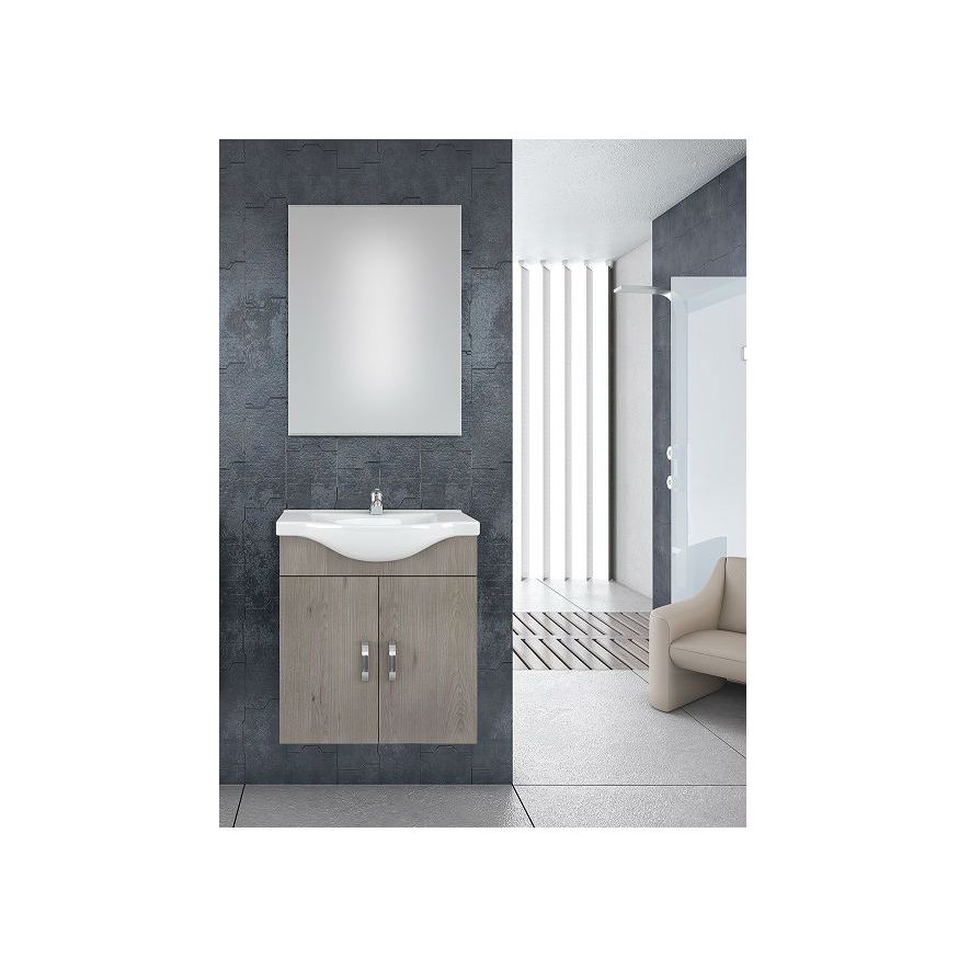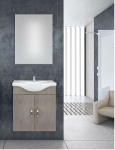 Έπιπλο μπάνιου Drop της σειράς Economic μοντέλο ALBA 65 Brown 3 65cm. Κρεμαστή βάση επίπλου, ενιαίος αποθηκευτικός χώρος δύο πόρτες από καφέ μελαμίνη, νιπτήρας πορσελάνης Monoblock, καθρέπτης κρεμαστός. Κομψότητα με στυλ. Μοντέρνες λύσεις που ξεχωρίζουν, για ένα μπάνιο με προσωπικότητα.