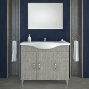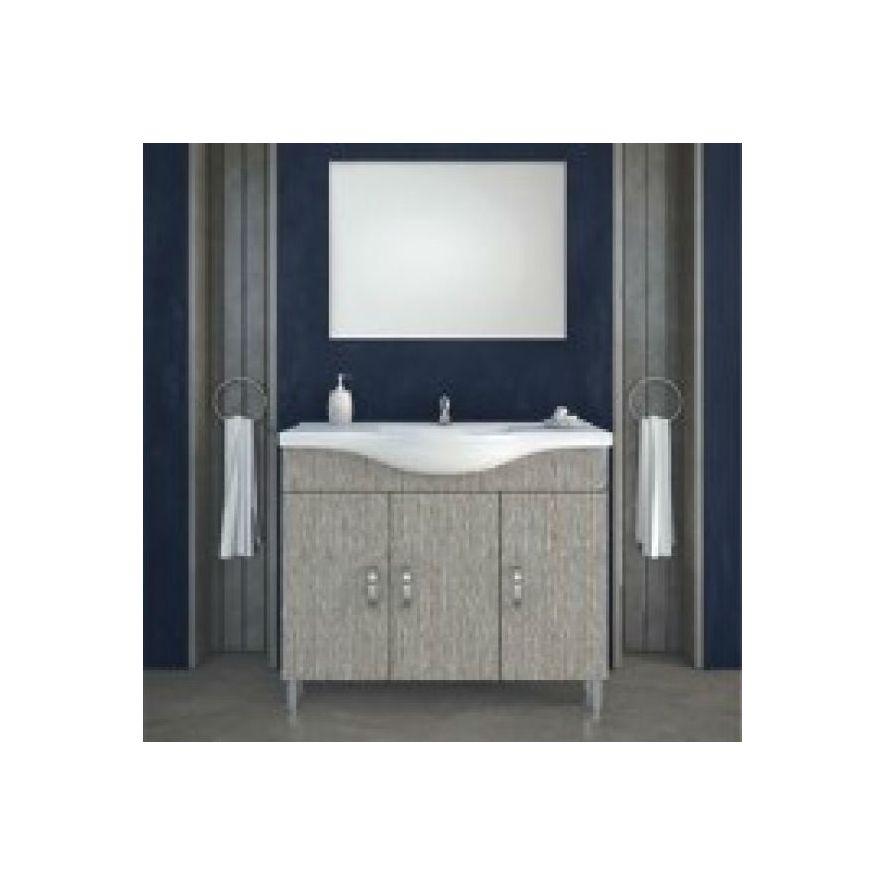 Έπιπλο μπάνιου Drop της σειράς Economic μοντέλο ALBA 100 Brown 4 100cm. Επιδαπέδια βάση επίπλου, δύο αποθηκευτικοί χώροι τρείς πόρτες, νιπτήρας πορσελάνης Monoblock, καθρέπτης κρεμαστός. Κομψότητα με στυλ. Μοντέρνες λύσεις που ξεχωρίζουν, για ένα μπάνιο με προσωπικότητα.