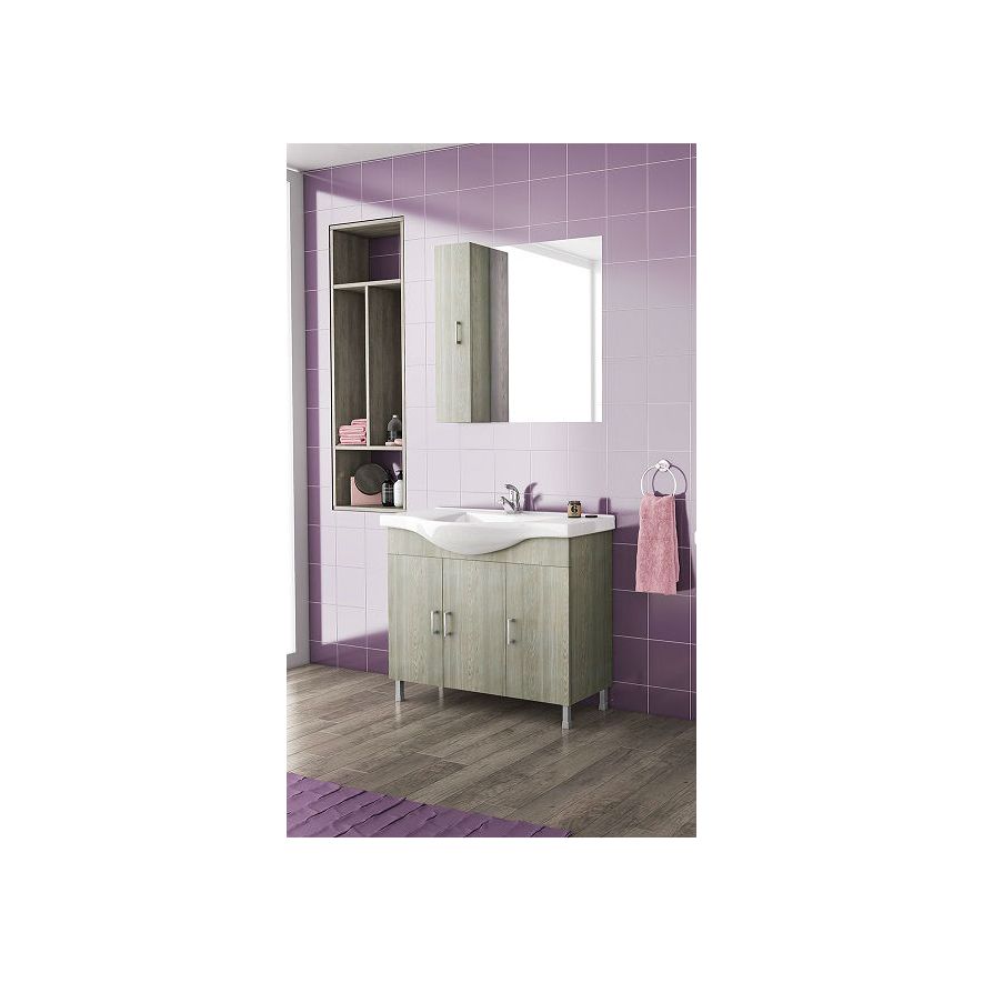 Έπιπλο μπάνιου Drop της σειράς Economic μοντέλο ALBA 100 Brown 3 100cm. Επιδαπέδια βάση επίπλου, δύο αποθηκευτικοί χώροι τρείς πόρτες, νιπτήρας πορσελάνης Monoblock, καθρέπτης κρεμαστός και κρεμαστό ερμάριο από μελαμίνη καφέ. Κομψότητα με στυλ. Μοντέρνες λύσεις που ξεχωρίζουν, για ένα μπάνιο με προσωπικότητα.