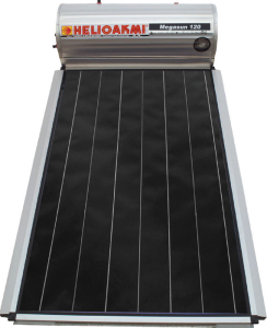 Ηλιακός θερμοσίφωνας τριπλής ενέργειας, κλειστού κυκλώματος της HELIOAKMI Megasun μοντέλο 120 Glass Black Selective.