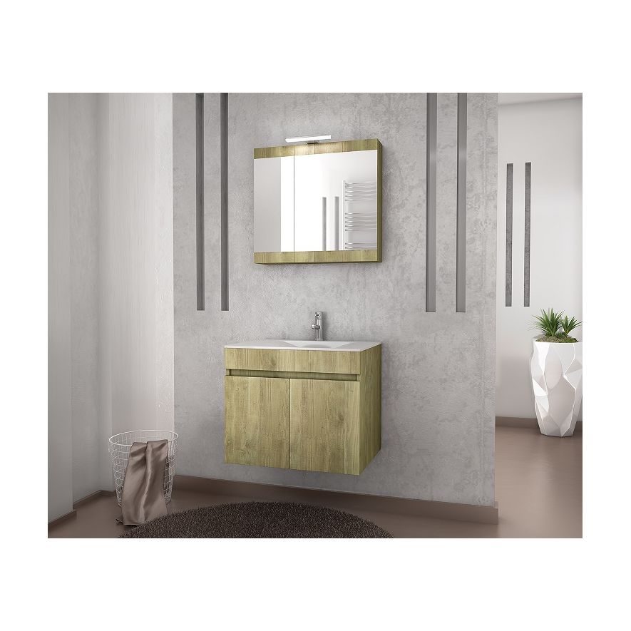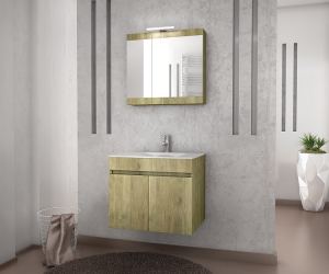 Έπιπλο μπάνιου Drop της σειράς Economic μοντέλο MAGNOLIA 60 Gold Oak. Κρεμαστή βάση επίπλου, ενιαίος αποθηκευτικός χώρος δύο πόρτες, νιπτήρας πορσελάνης προφίλ 2 cm, καθρέπτης κρεμαστός από μελαμίνη Gold Oak, φωτιστικό led. Κομψότητα με στυλ. Μοντέρνες λύσεις που ξεχωρίζουν, για ένα μπάνιο με προσωπικότητα.