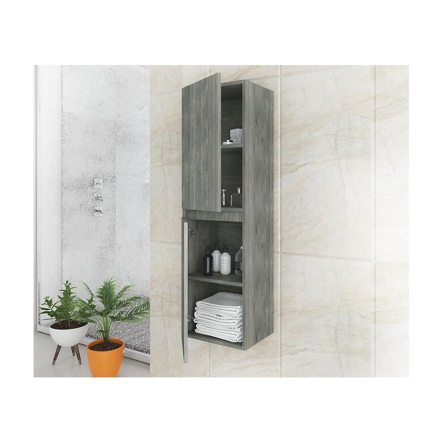 Έπιπλο μπάνιου κρεμαστή στήλη Drop της σειράς Economic μοντέλο MAGNOLIA Smoked Oak 118 cm Υ, δύο αποθηκευτικοί χώροι, δύο πόρτες, από μελαμίνη Smoked Oak. Κομψότητα με στυλ. Μοντέρνες λύσεις που ξεχωρίζουν, για ένα μπάνιο με προσωπικότητα.