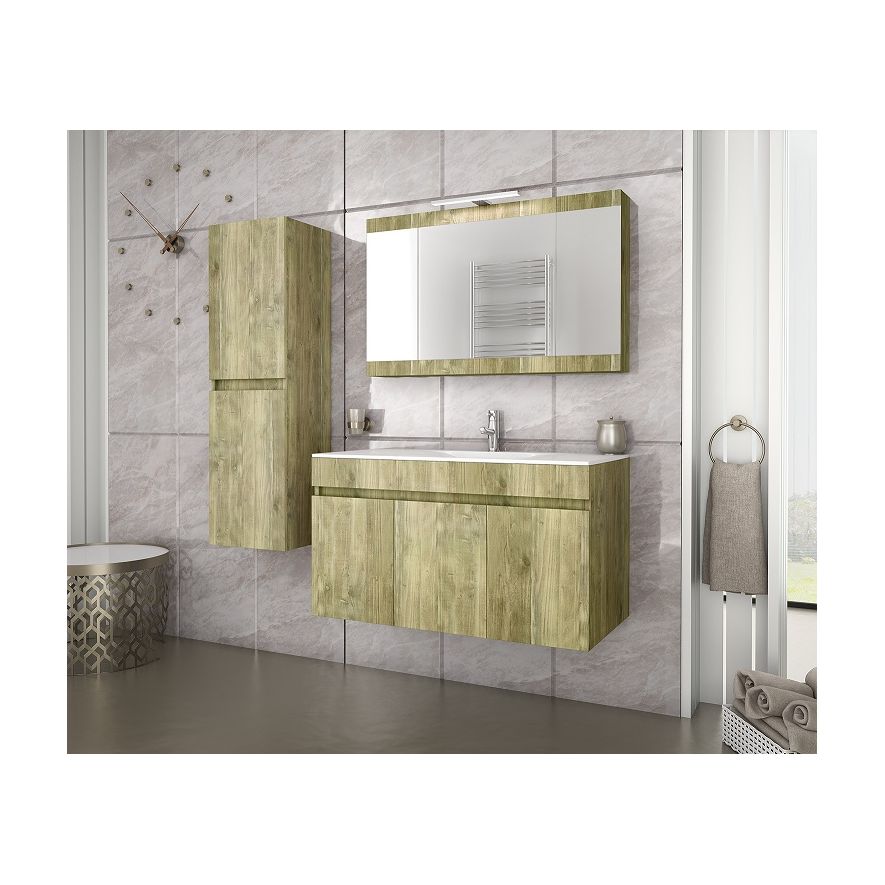 Έπιπλο μπάνιου Drop της σειράς Economic μοντέλο MAGNOLIA 90 Gold Oak. Κρεμαστή βάση επίπλου, δύο αποθηκευτικοί χώροι τρείς πόρτες, νιπτήρας πορσελάνης προφίλ 2 cm, καθρέπτης κρεμαστός, ανακλινόμενη μεσαία πόρτα από μελαμίνη Gold Oak, φωτιστικό led. Κομψότητα με στυλ. Μοντέρνες λύσεις που ξεχωρίζουν, για ένα μπάνιο με προσωπικότητα.