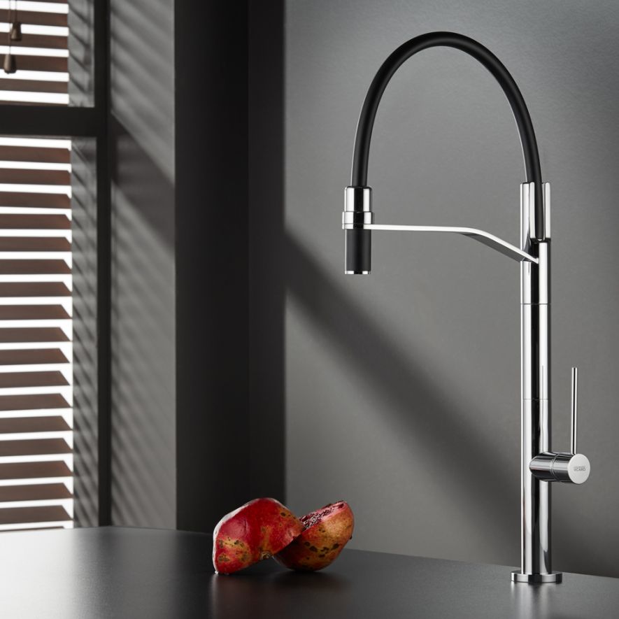 Μπαταρία κουζίνας με αποσπόμενο ντους άθραυστο σπιράλ αυτόματης επαναφοράς και υψηλό περιστρεφόμενο ρουξούνι κατάλληλη και για νησίδες, φινίρισμα χρωμέ, Carron Phoenix TOZO 48680. Όλες οι σειρές των μπαταριών Carron Phoenix έχουν σχεδιαστεί για να σέβονται την αισθητική και το περιβάλλον. Όλα τα προϊόντα έχουν ιδανική σχέση ποιότητας – τιμής.