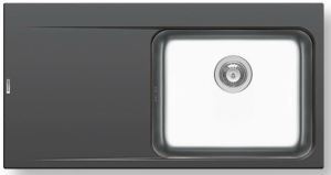 Ένθετος νεροχύτης γρανίτη, μία γούρνα και ποδιά δεξιά, PYRAMIS μοντέλο: Pyragranite & Inox Pyrros (100x52) 1B 1D RH χρώματος Iron Grey. Καινοτομία: Pyragranite μαξιλάρι με ενσωματωμένη ανοξείδωτη γούρνα. Οι νεροχύτες PYRAMIS Pyragranite αποτελούνται από 80% κρυστάλλους φυσικού γρανίτη (silica), ενώ το υπόλοιπο 20% του μείγματος αποτελείται από ρητίνες και άλλες ουσίες που βοηθούν στη σύνδεση των κρυστάλλων, ώστε ο νεροχύτης να παραμένει αναλλοίωτος για μια ζωή.