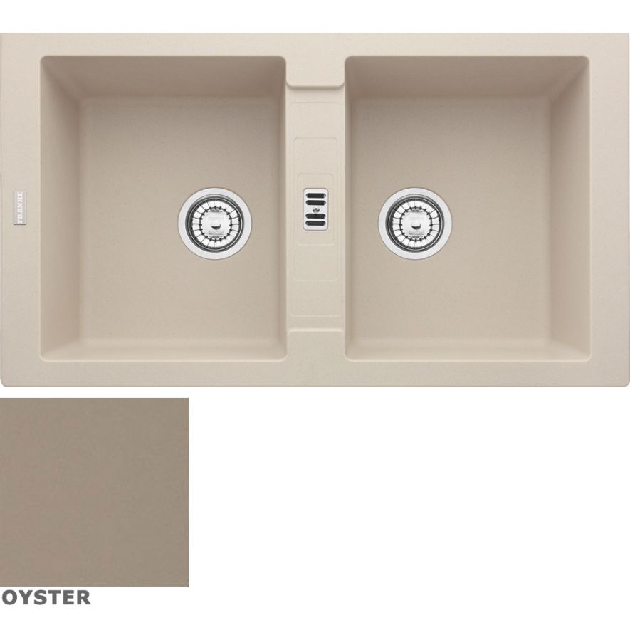Ένθετος νεροχύτης γρανίτη με δύο συμμετρικές γούρνες χωρίς ποδιά, FRANKE Fragranite της συλλογής: Maris μοντέλο: MAG 620 Oyster 86x50 cm. Ένας νεροχύτης με ιδιαίτερο σχεδιασμό και εξαιρετική αισθητική. Μια πλήρης γκάμα νεροχυτών, που διακρίνονται για την εξαιρετική τους αντοχή, την υψηλή ποιότητα και τα φυσικά χρώματα, συνδυάζουν άψογα την κομψότητα και την εργονομία.