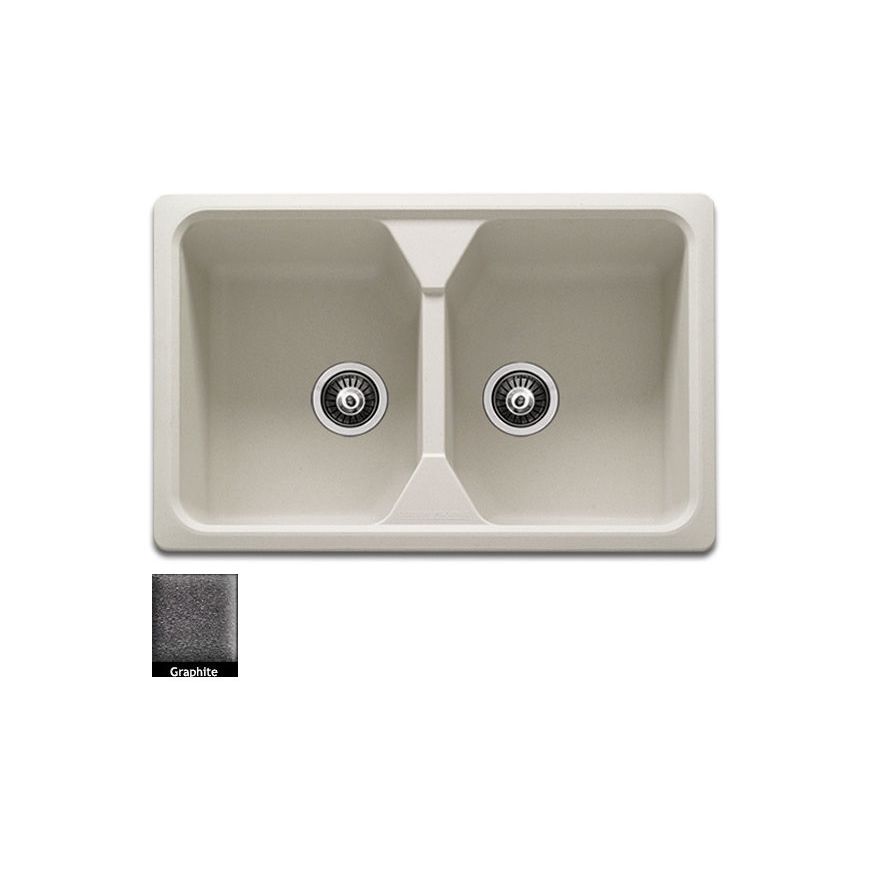 Ένθετος νεροχύτης γρανίτη με δύο συμμετρικές γούρνες χωρίς ποδιά, Carron Phoenix μοντέλο: Debut 200 Graphite Metallic 78,4x51 cm. Διατίθεται επιπλέον σε αποχρώσεις Ivory, White, Beige, Cappuccino & Oyster Metallic. Μια πλήρης γκάμα νεροχυτών, που διακρίνονται για την εξαιρετική τους αντοχή, την υψηλή ποιότητα και τα φυσικά χρώματα, συνδυάζουν άψογα την κομψότητα και την εργονομία.
