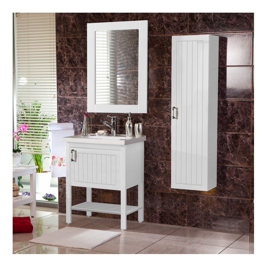 Έπιπλο μπάνιου σετ της MARTIN σειρά EFE WHITE 60 Ματ Λάκα. Επιδαπέδια βάση επίπλου, με αποθηκευτικό χώρο, ένα πορτάκι, νιπτήρας πορσελάνης, καθρέπτης κρεμαστός. Η σειρά επίπλων μπάνιου ακολουθεί τη λογική ενσωματώνει όλες τις σύγχρονες τάσεις στο σχεδιασμό επίπλων μπάνιου.