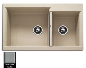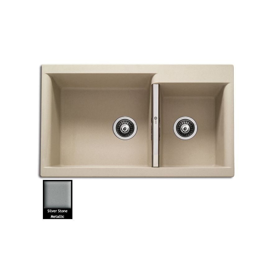Ένθετος νεροχύτης ορυκτού γρανίτη με δύο ασύμμετρες γούρνες χωρίς ποδιά, Carron Phoenix μοντέλο: JAVA 4205 Silver Stone 86x51 cm. Διατίθεται επιπλέον σε αποχρώσεις White, Oyster, Ivory, Cappuccino, Espresso & Graphite Metallic. Μια πλήρης γκάμα νεροχυτών, που διακρίνονται για την εξαιρετική τους αντοχή, την υψηλή ποιότητα και τα φυσικά χρώματα, συνδυάζουν άψογα την κομψότητα και την εργονομία.