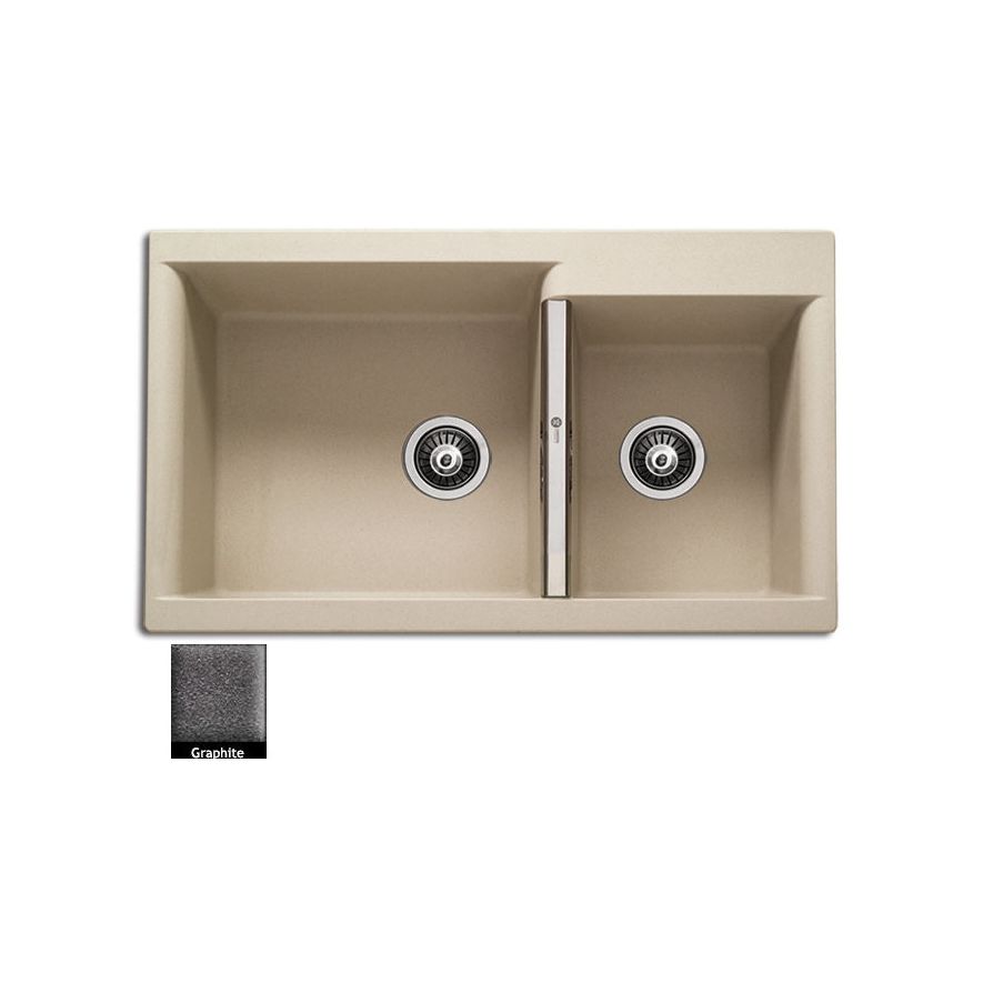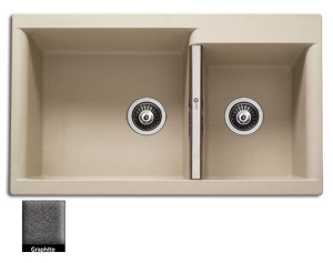 Ένθετος νεροχύτης ορυκτού γρανίτη με δύο ασύμμετρες γούρνες χωρίς ποδιά, Carron Phoenix μοντέλο: JAVA 4205 Graphite 86x51 cm. Διατίθεται επιπλέον σε αποχρώσεις White, Oyster, Ivory, Cappuccino, Espresso & Silver Stone Metallic. Μια πλήρης γκάμα νεροχυτών, που διακρίνονται για την εξαιρετική τους αντοχή, την υψηλή ποιότητα και τα φυσικά χρώματα, συνδυάζουν άψογα την κομψότητα και την εργονομία.