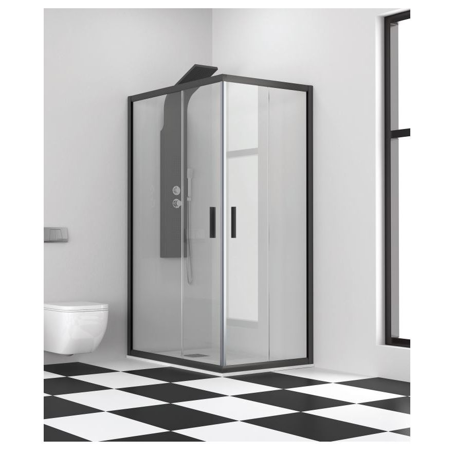 Καμπίνα ντουζιέρας τετράγωνη Karag μοντέλο EFE 100 NERO, 80x80x h 190 cm, κρύσταλλο ασφαλείας 5 mm Tempered διαφανές, μεταλλικά μέρη ανοδιωμένο προφίλ αλουμινίου.