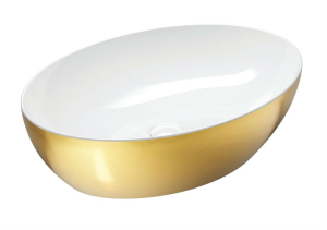 Νιπτήρας επιτραπέζιος πορσελάνης υψηλής ποιότητας διπλής επισμάλτωσης Dualglaze®, GSI σειρά PURA 8842 Gold60x42xh16 cm βάθος γούρνας 12cm χωρίς υπερχείλιση. Άριστη ποιότητα που εξασφαλίζει την απαιτούμενη αντοχή και διαχρονικότητα.