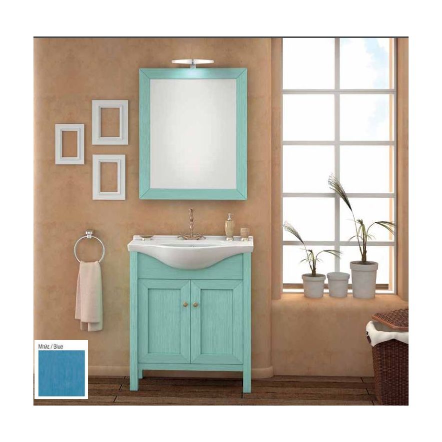 Έπιπλο μπάνιου Drop της σειράς Classic μοντέλο FAETHON 65 Blue 65cm & Mirror Wall. Επιδαπέδια βάση επίπλου, ενιαίος αποθηκευτικός χώρος δύο πόρτες, νιπτήρας πορσελάνης Monoblock, καθρέπτης κρεμαστός με πλαίσιο από Ξύλο Βελανιδιάς Blue και ένα φωτιστικό. Μοντέρνες λύσεις που ξεχωρίζουν, για ένα μπάνιο με προσωπικότητα.