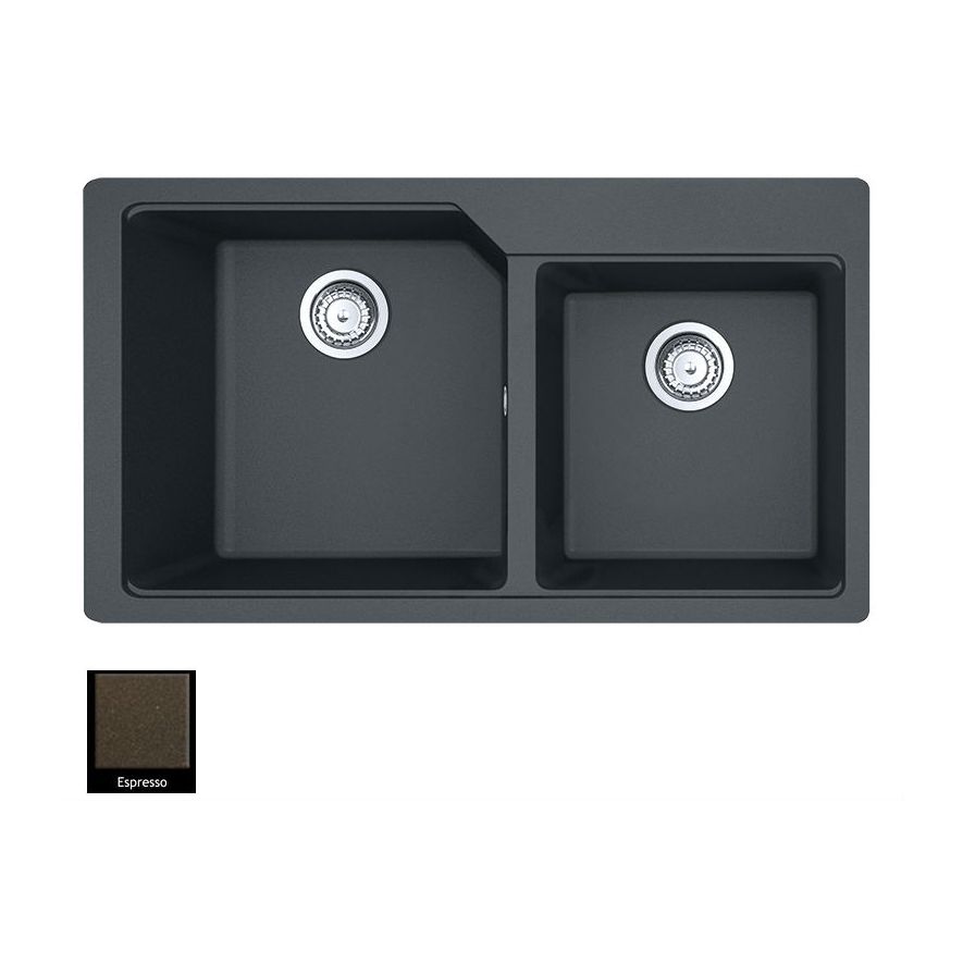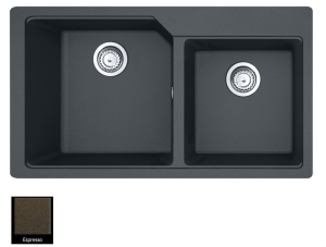 Ένθετος νεροχύτης ορυκτού γρανίτη με δύο ασύμμετρες γούρνες χωρίς ποδιά, Carron Phoenix μοντέλο: ARUBA 6205 Espresso 86x50 cm. Διατίθεται επιπλέον σε αποχρώσεις Graphite, Black, Ivory, Cappuccino, White, Beige, Oyster & Silver Stone Metallic. Μια πλήρης γκάμα νεροχυτών, που διακρίνονται για την εξαιρετική τους αντοχή, την υψηλή ποιότητα και τα φυσικά χρώματα, συνδυάζουν άψογα την κομψότητα και την εργονομία.