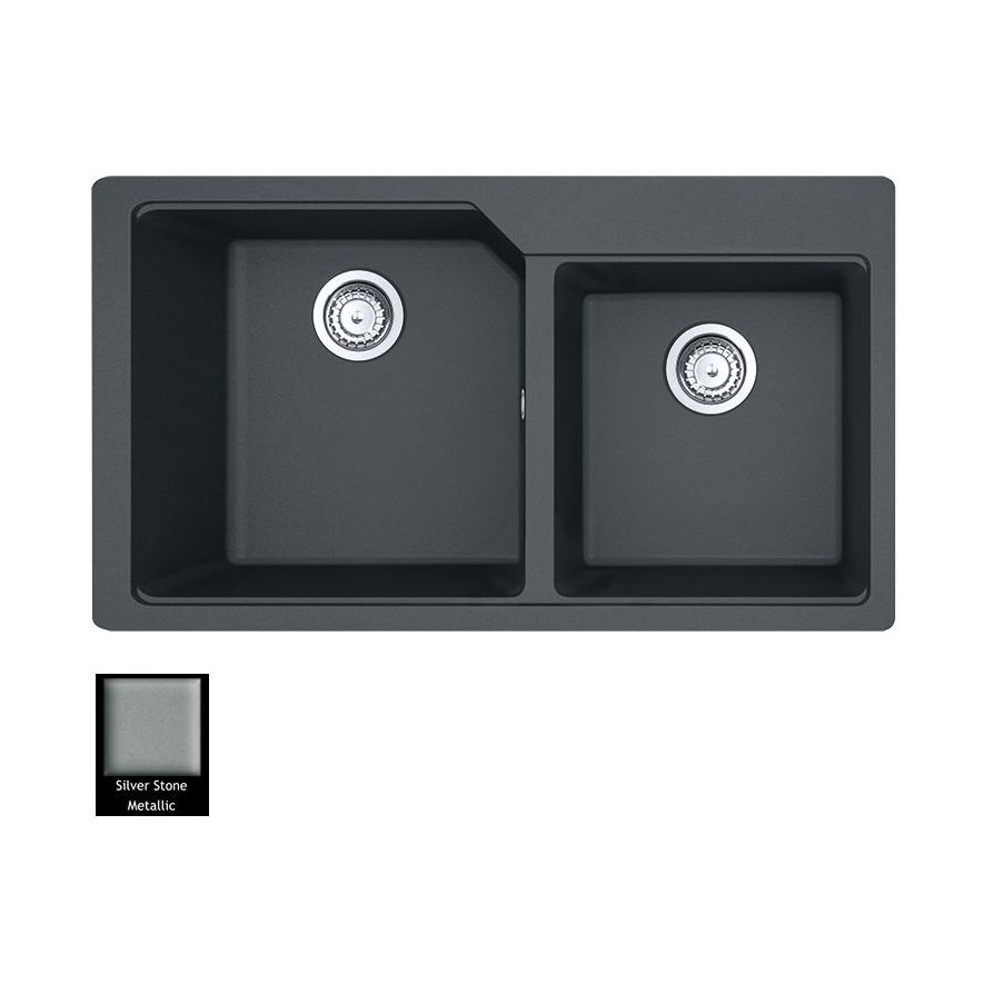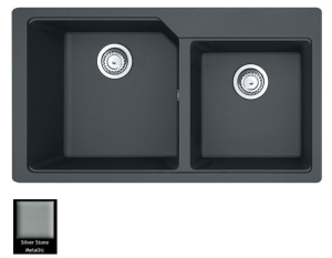 Ένθετος νεροχύτης ορυκτού γρανίτη με δύο ασύμμετρες γούρνες χωρίς ποδιά, Carron Phoenix μοντέλο: ARUBA 6205 Silver Stone 86x50 cm. Διατίθεται επιπλέον σε αποχρώσεις Graphite, Black, Ivory, Cappuccino, White, Beige, Espresso & Oyster. Μια πλήρης γκάμα νεροχυτών, που διακρίνονται για την εξαιρετική τους αντοχή, την υψηλή ποιότητα και τα φυσικά χρώματα, συνδυάζουν άψογα την κομψότητα και την εργονομία.