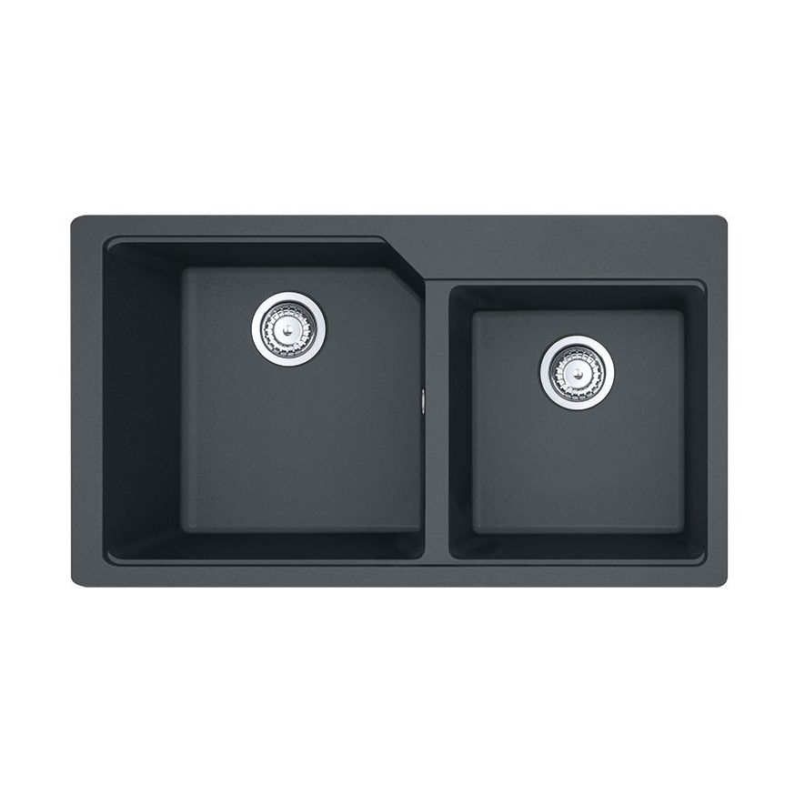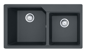 Ένθετος νεροχύτης ορυκτού γρανίτη με δύο ασύμμετρες γούρνες χωρίς ποδιά, Carron Phoenix μοντέλο: ARUBA 6205 Black 86x50 cm. Διατίθεται επιπλέον σε αποχρώσεις Graphite, Ivory, Cappuccino, White, Beige, Espresso, Oyster & Silver Stone. Μια πλήρης γκάμα νεροχυτών, που διακρίνονται για την εξαιρετική τους αντοχή, την υψηλή ποιότητα και τα φυσικά χρώματα, συνδυάζουν άψογα την κομψότητα και την εργονομία.