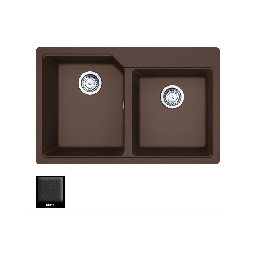 Ένθετος νεροχύτης ορυκτού γρανίτη με δύο ασύμμετρες γούρνες χωρίς ποδιά, Carron Phoenix μοντέλο: ARUBA 6200 Black 78x50 cm. Διατίθεται επιπλέον σε αποχρώσεις Graphite, Ivory, Cappuccino, White, Beige, Espresso, Oyster & Silver Stone. Μια πλήρης γκάμα νεροχυτών, που διακρίνονται για την εξαιρετική τους αντοχή, την υψηλή ποιότητα και τα φυσικά χρώματα, συνδυάζουν άψογα την κομψότητα και την εργονομία.