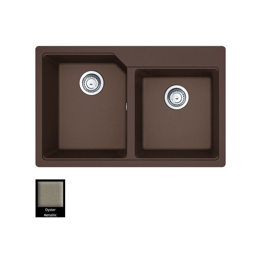 Ένθετος νεροχύτης ορυκτού γρανίτη με δύο ασύμμετρες γούρνες χωρίς ποδιά, Carron Phoenix μοντέλο: ARUBA 6200 Oyster 78x50 cm. Διατίθεται επιπλέον σε αποχρώσεις Graphite, White, Beige, Black, Ivory, Espresso, Cappuccino & Silver Stone. Μια πλήρης γκάμα νεροχυτών, που διακρίνονται για την εξαιρετική τους αντοχή, την υψηλή ποιότητα και τα φυσικά χρώματα, συνδυάζουν άψογα την κομψότητα και την εργονομία.